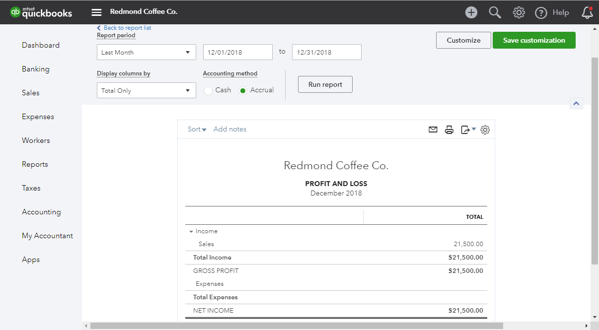 The upside: this is easy to record, and easy to make accrual vs. cash basis accounting work correctly in QuickBooks (assuming your version of QuickBooks allows you to track Accounts Payable).