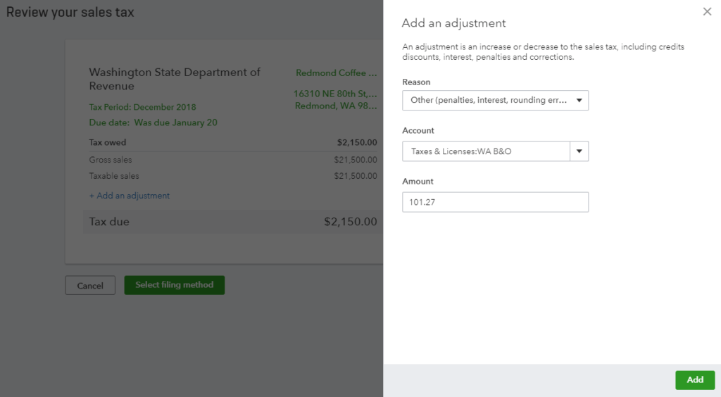 How to Record Paying Sales Tax and WA B&O Using the Sales Tax Adjustment Method