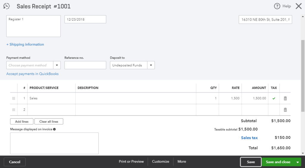 Once you’ve set up sales tax in QuickBooks Online, you’re ready to start recording sales receipts that include sales tax.