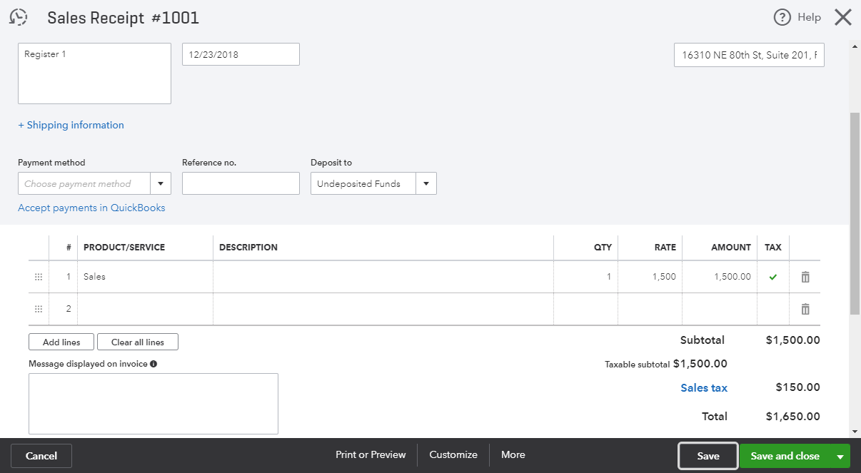 How to Record a Sales Receipt with WA Sales Tax in QBO