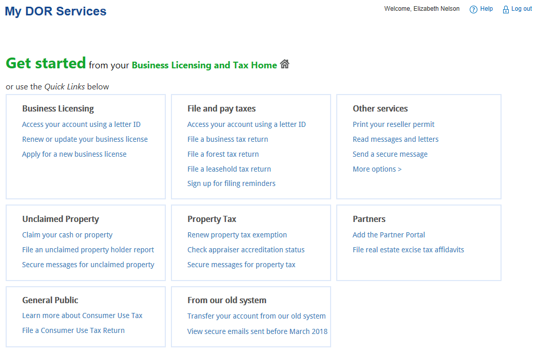 MyDOR is the Washington Department of Revenue’s online portal. This account is what you’ll use to file your initial business license application. You’ll also use this account in the future to file Washington excise tax returns.